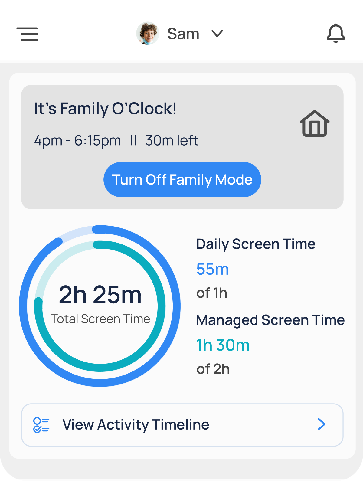 Easily manage requests for more screen time or app access directly from your dashboard