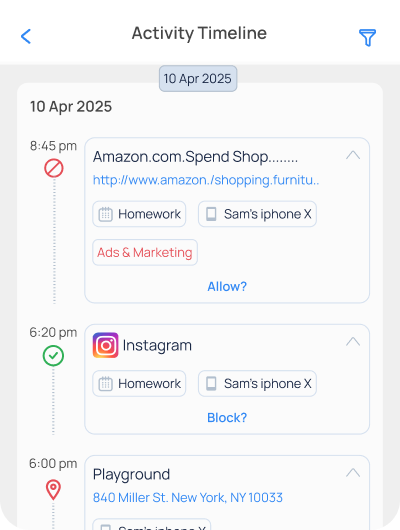 Concerned about your child’s digital habits? Mobicip’s Activity Summary lets you easily track screen time, app usage, and browsing history helping you build healthier online habits. Mobicip ideal for parents seeking a comprehensive Parental Control Dashboard or a smart Online Monitoring App.